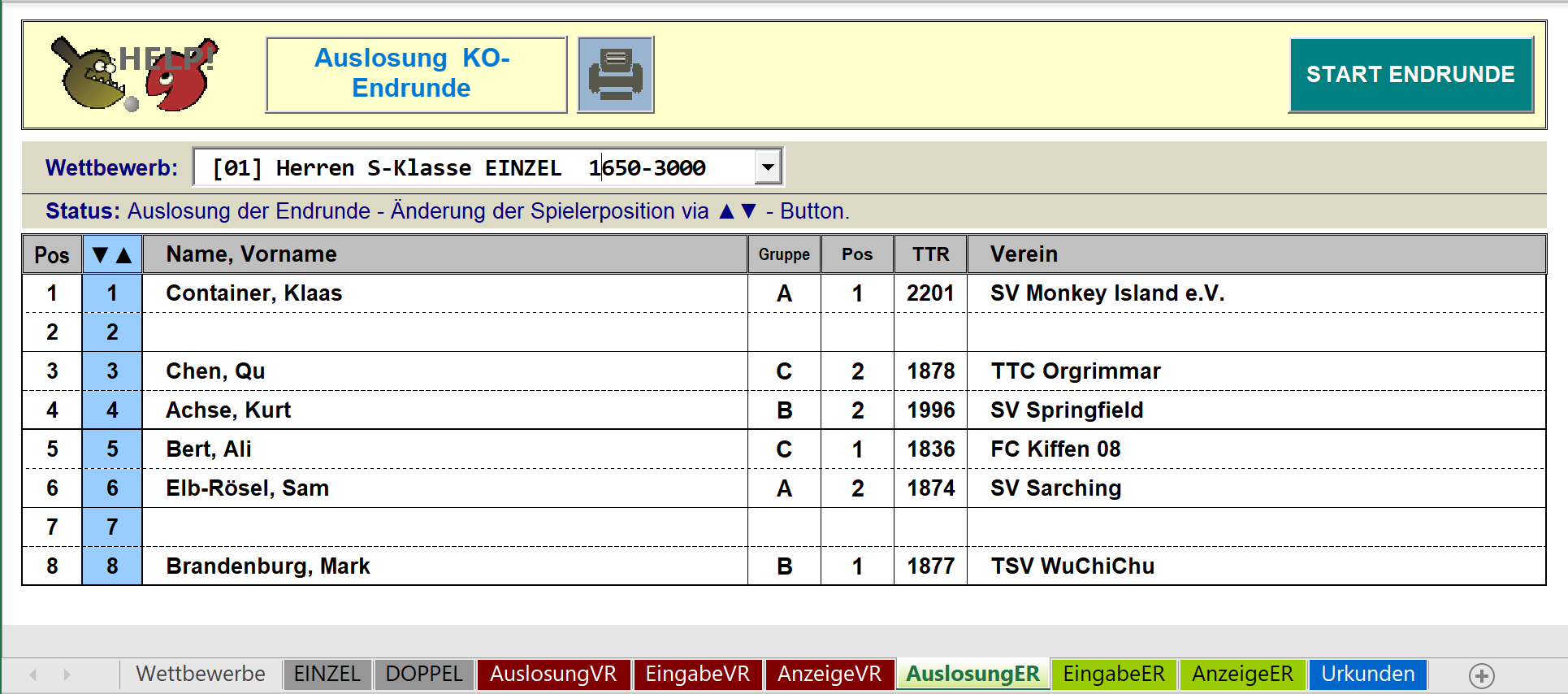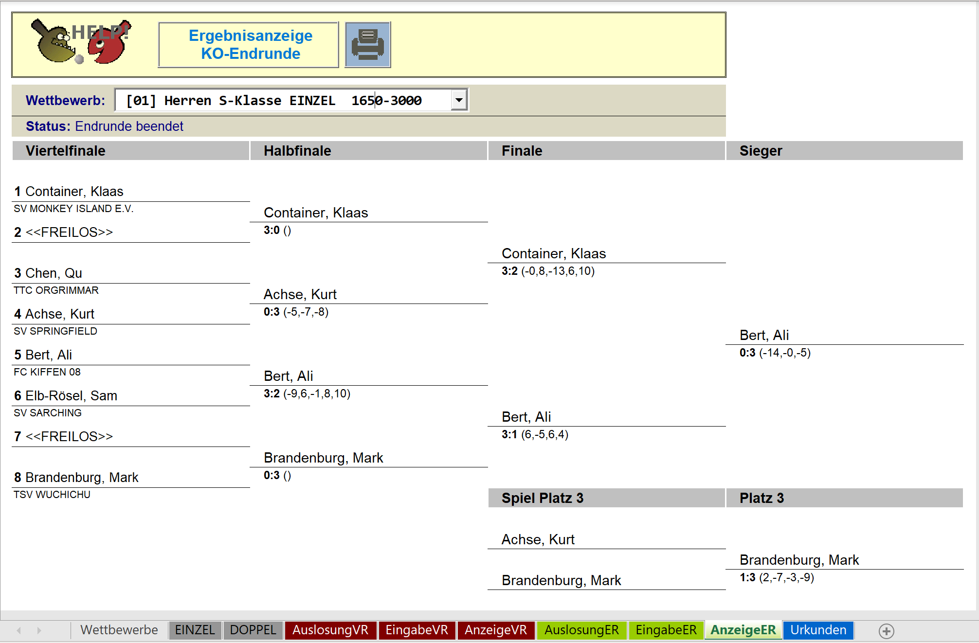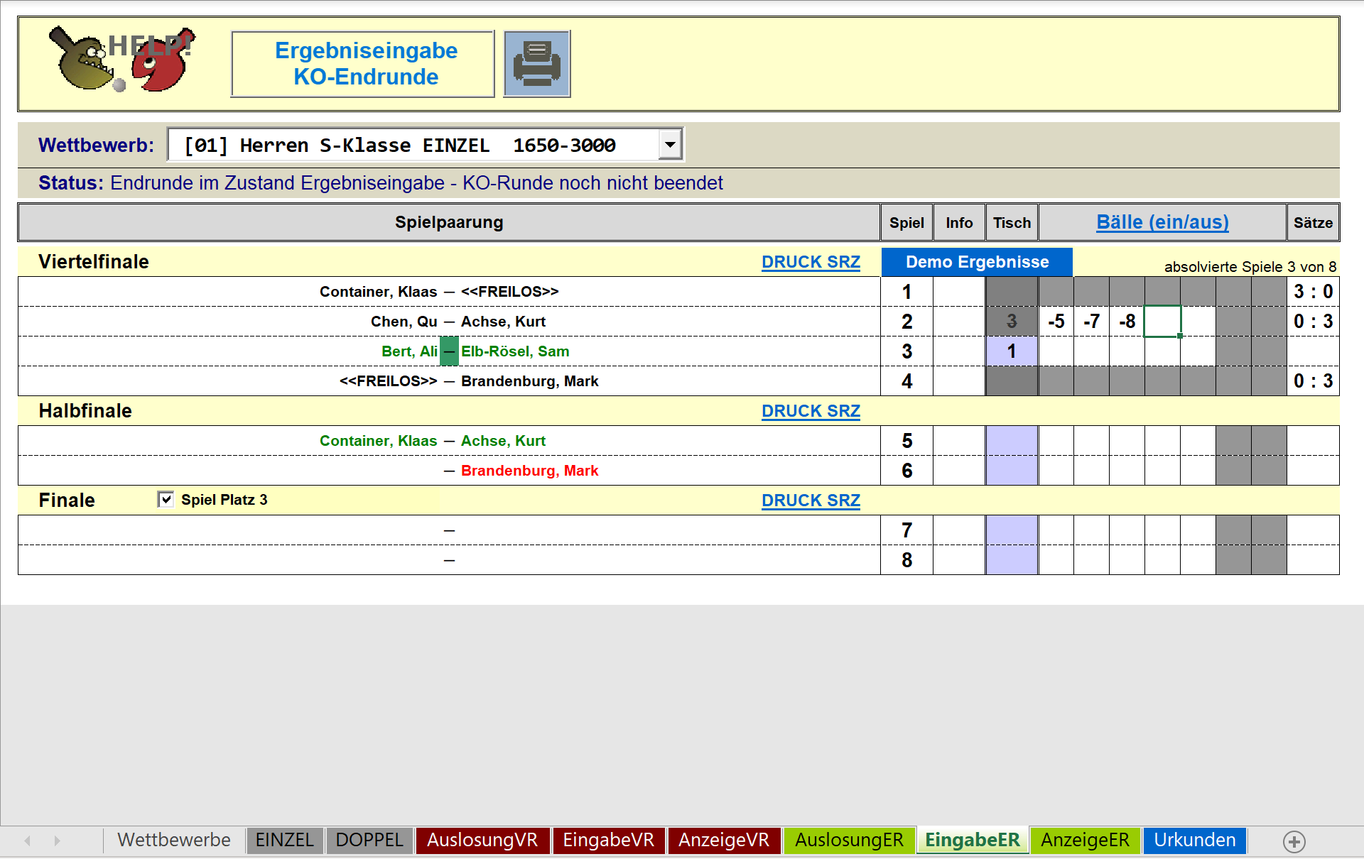 Abbildung: Register zur Eingabe der KO-Endrunden Ergebnisse