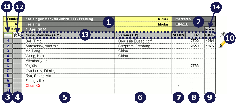 Spaltenüberschriften Durch Anklicken der Spaltenüberschriften werden die Teilnehmer auf- bzw. absteigend sortiert.