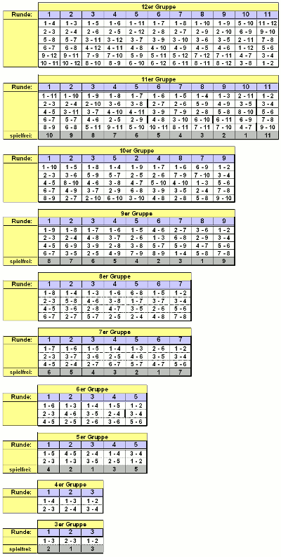Sind alle gewünschten (manuellen) Vertauschungen durchgeführt, so kann durch Drücken des Buttons START GRUPPEN SPIELE (3) die Vorrunde gestartet werden. Das Programm erzeugt alle Spielpaarungen, wechselt ins Register EingabeVR und sperrt aus Sicherheitsgründen das Register GruppenVR gegen weitere Modifikationen.